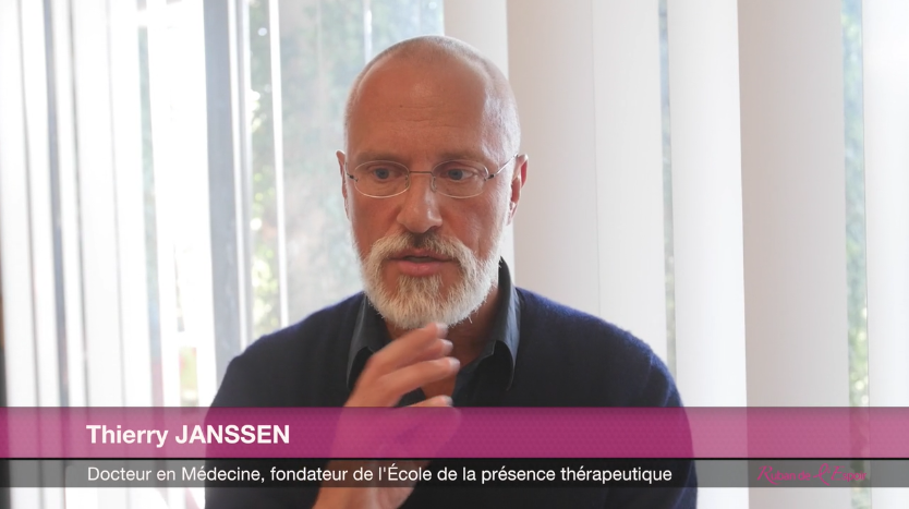 Lors de l'étape du Ruban de l'Espoir 2015 organisé par l'associaiton Au sein des femmes Be à Louvain La Neuve Thierry Janssen après 2 ans de retraite nous a accordés une longue interview. Thierry Janssen a entre autre créé l'école de la présence thérapeutique.